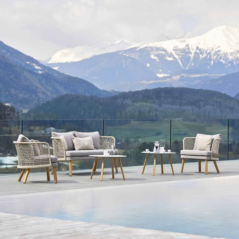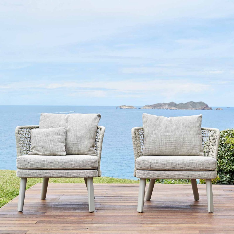 Emma è una collezione di mobili outdoor progettata da Monica Armani per Varaschin. Una collezione sobria ed elegante, caratterizzata dallo schienale lavorato ad intreccio in corda a mano. Le gambe della poltrona Emma possono essere in alluminio nei vari colori o in legno iroko massello. La seduta è rivestita in texture perla o grey brown o in tessuto categoria B, C, D e E. Richiedici subito un preventivo senza impegno per scoprire tutte le finiture e i tessuti disponibili e il prezzo esclusivo della poltrona Emma di Varaschin riservato a clienti di Allmyhome.