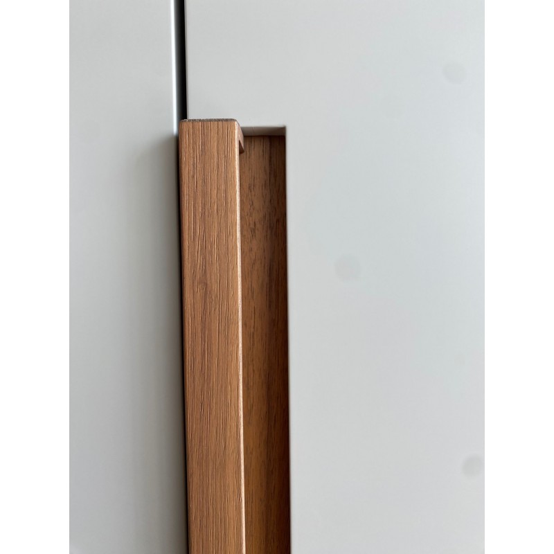 L'armadio Tratto di Sangiacomo con ante battenti ha un design essenziale con un dettaglio decorativo sull'anta: un tratto, proprio come fa intuire il nome, sulla maniglia a contrasto con la finitura della struttura