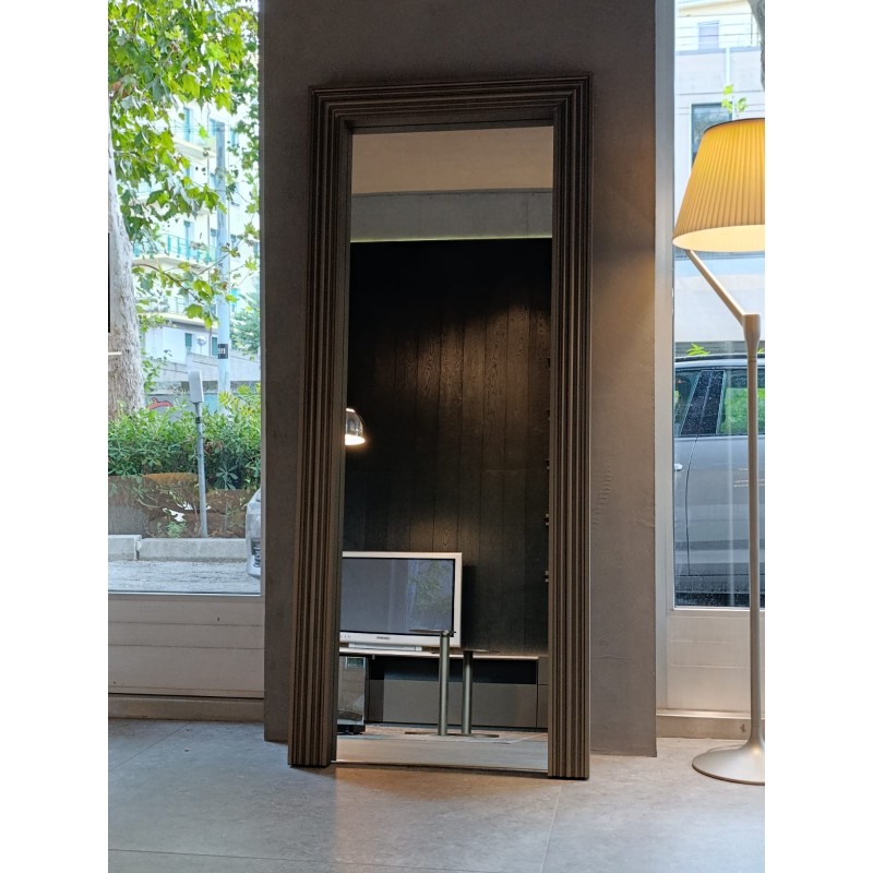 Oodh di Opinion Ciatti è uno specchio all'apparenza tradizionale da terra, ma in realtà è privo della porzione di cornice inferiore. Un complemento d'arredo senza tempo e dallo spirito irriverente, caratterizzato dalla cornice composta da vari bassorilievi e scanalature.