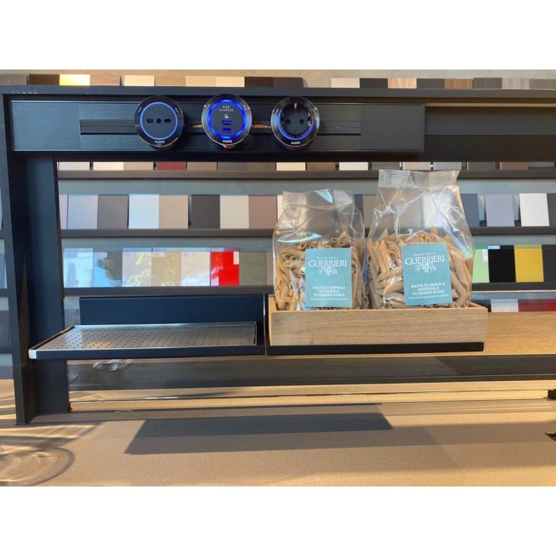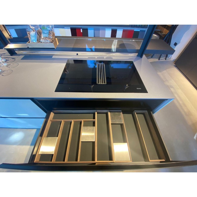 Riciclantica e Forma Mentis sono le collezioni di Valcucine che si fondono in un'unica cucina da expo proposta a prezzo outlet. Data la forte riduzione della quantità totale di materiale utilizzato – oltre alla scelta di finiture eco-tech - Riciclantica è la proposta sostenibile e innovativa del marchio. Forma Mentis è studiata per agevolare la presa e l’apertura senza maniglie, consentendo al contempo massima pulizia estetica e praticità d’uso.