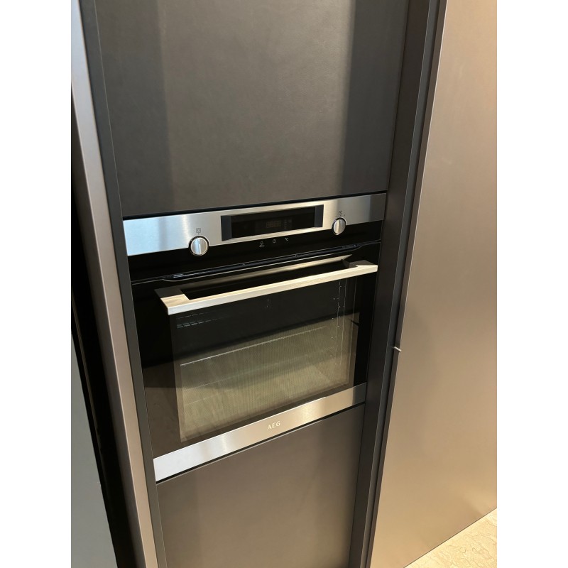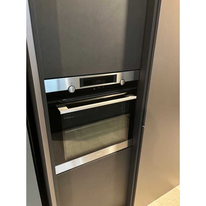 Colonna con anta push pull con meccanismo per anta rientrante, internamente con vano forno e due ante con ripiani
