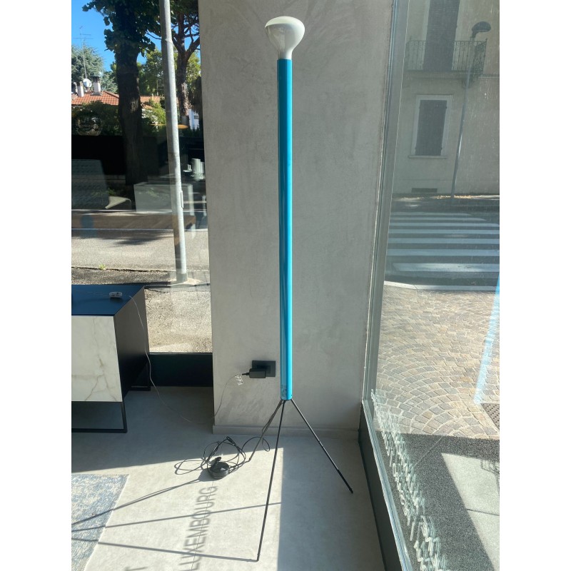 La lampada Luminator di Flos a luce indiretta ha lo stelo di ferro smaltato vetrificato. Gambe in metallo zincato verniciate a liquido. Lampadina con riflettore 200 W.