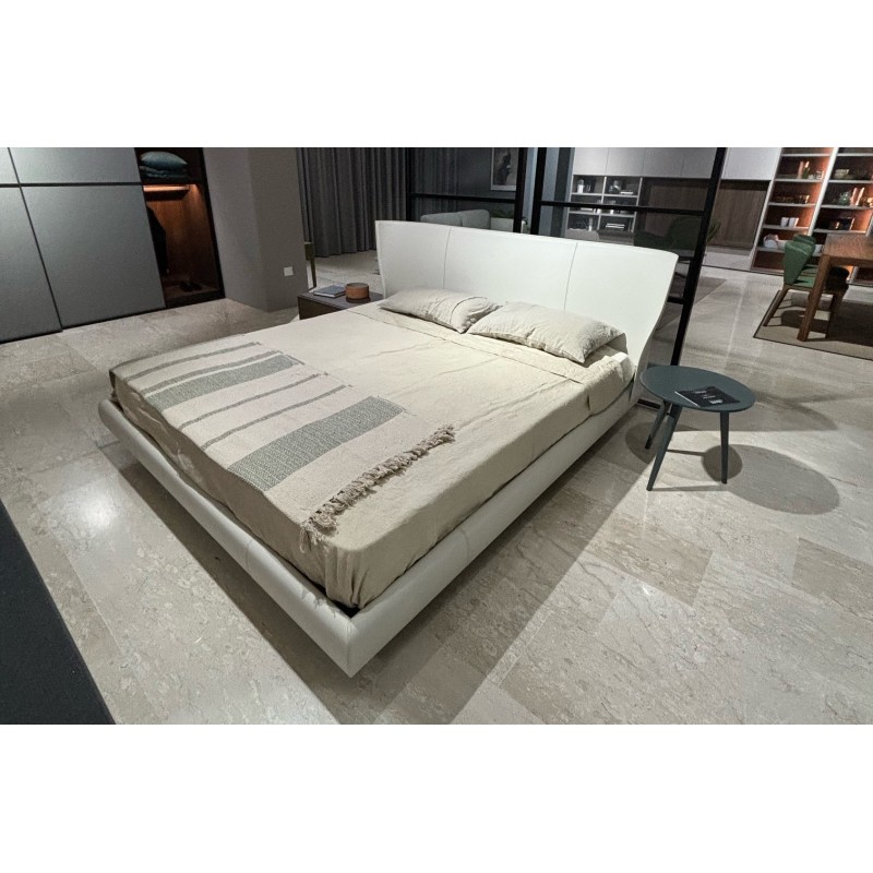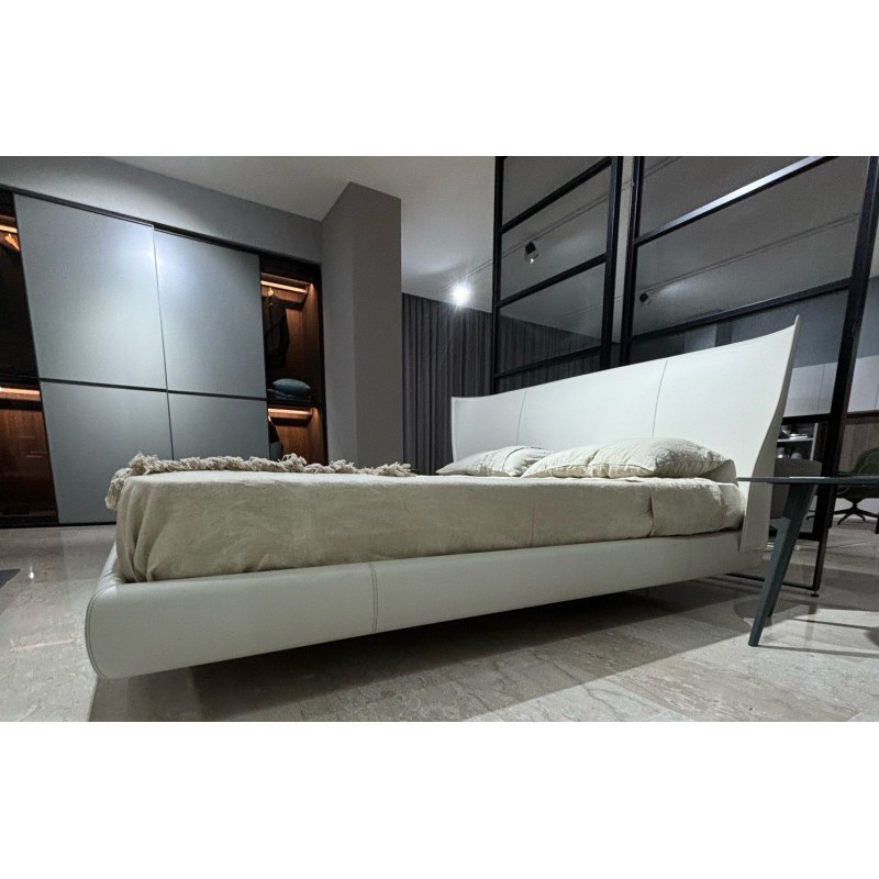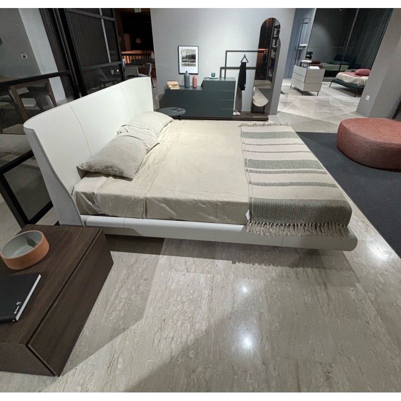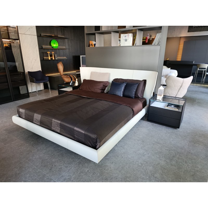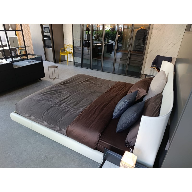 Il letto Alys di B&B Italia è stato presentato 10 anni fa e oggi celebra il suo anniversario con una nuova versione che prevede la base più importante, forme più morbide e un nuovo rivestimento cuoio bianco latte, disponibile a prezzo outlet per rinnovo expo.