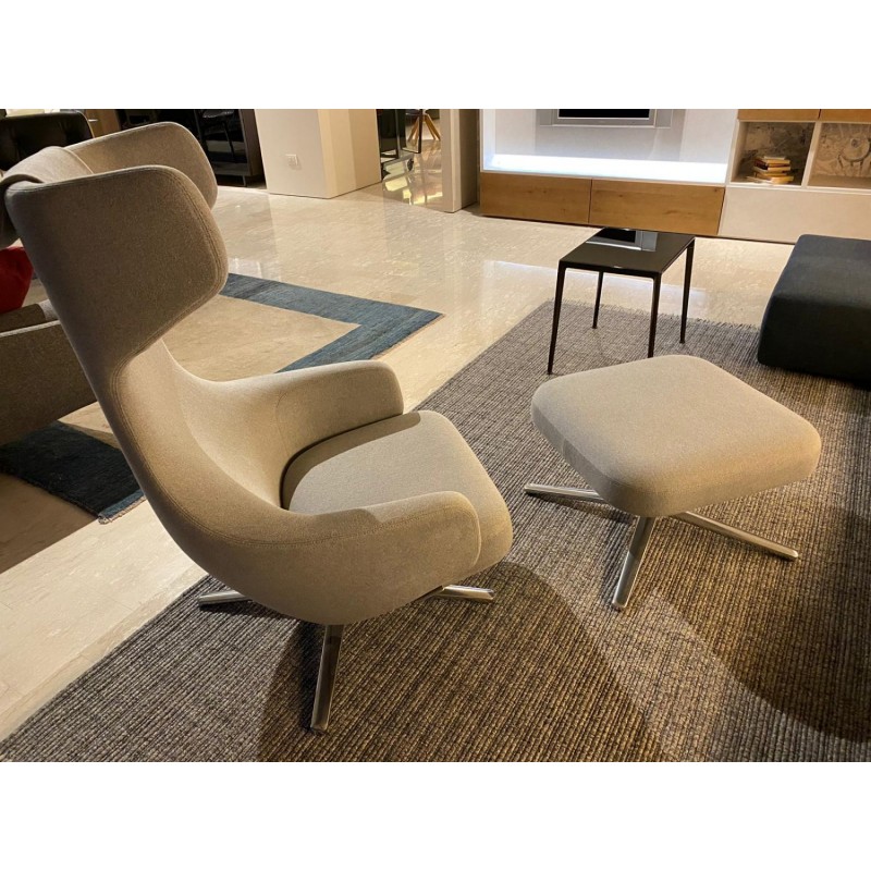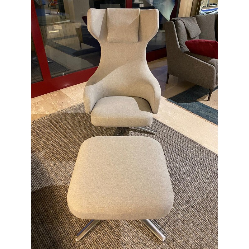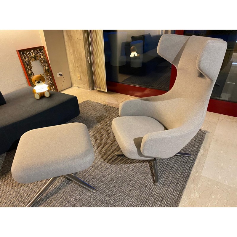 La Gran Repos di Vitra, progettata da Antonio Citterio, è una lounge chair di design e grande comfort. La funzione rilassante è ottimizzata dalla forma arrotondata che la caratterizza. Il meccanismo sincronizzato nascosto al di sotto dell‘imbottitura della poltrona assicura un supporto continuo della schiena ad ogni inclinazione e può essere bloccato in qualsiasi posizione. Girevole.