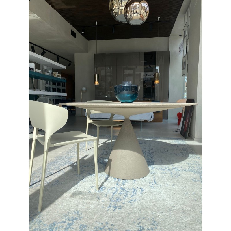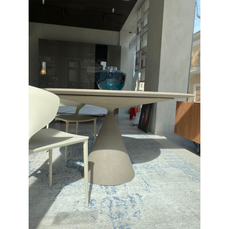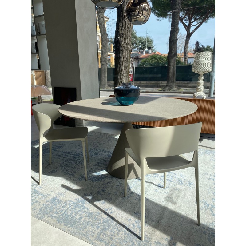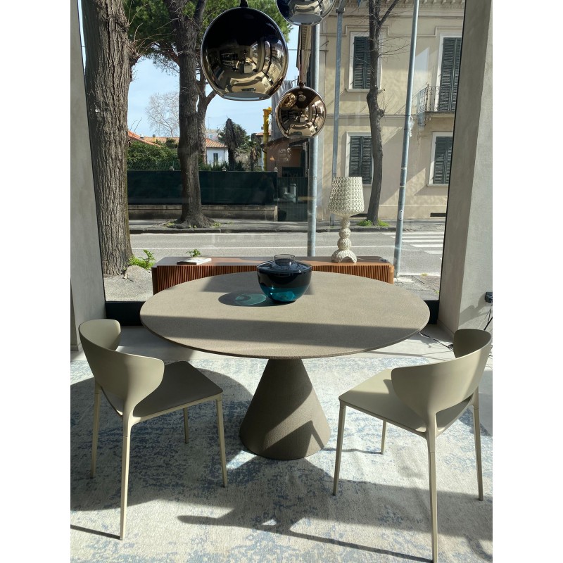 ll tavolo Clay di Desalto si contraddistingue per un effetto monolitico del piano e della base. Un tavolo scultoreo rotondo con finitura spatolata materica in grado di dare forte personalità agli ambienti residenziali.