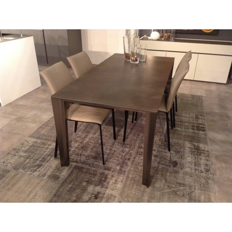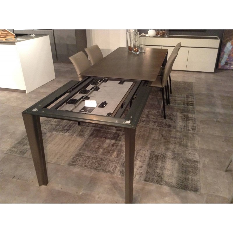 Il tavolo Skin di Desalto si caratterizza per spessori esili che nascondono meccanismi in grado di allungare il piano senza perdere l'armonia delle proporzioni.