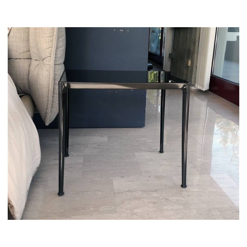Struttura verniciata nero cromato / piano in vetro riflettente bronzato verniciato