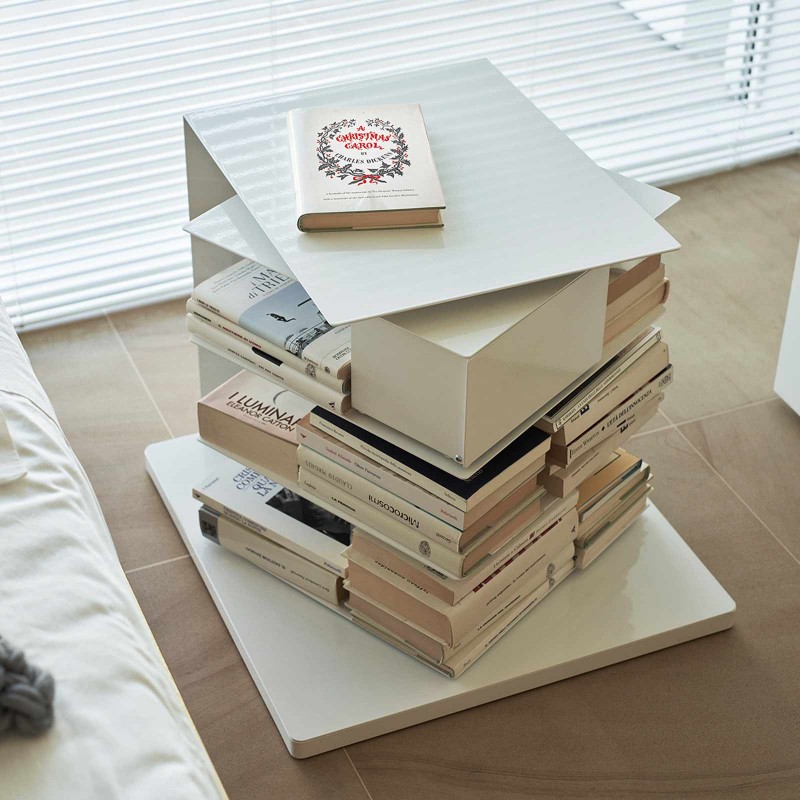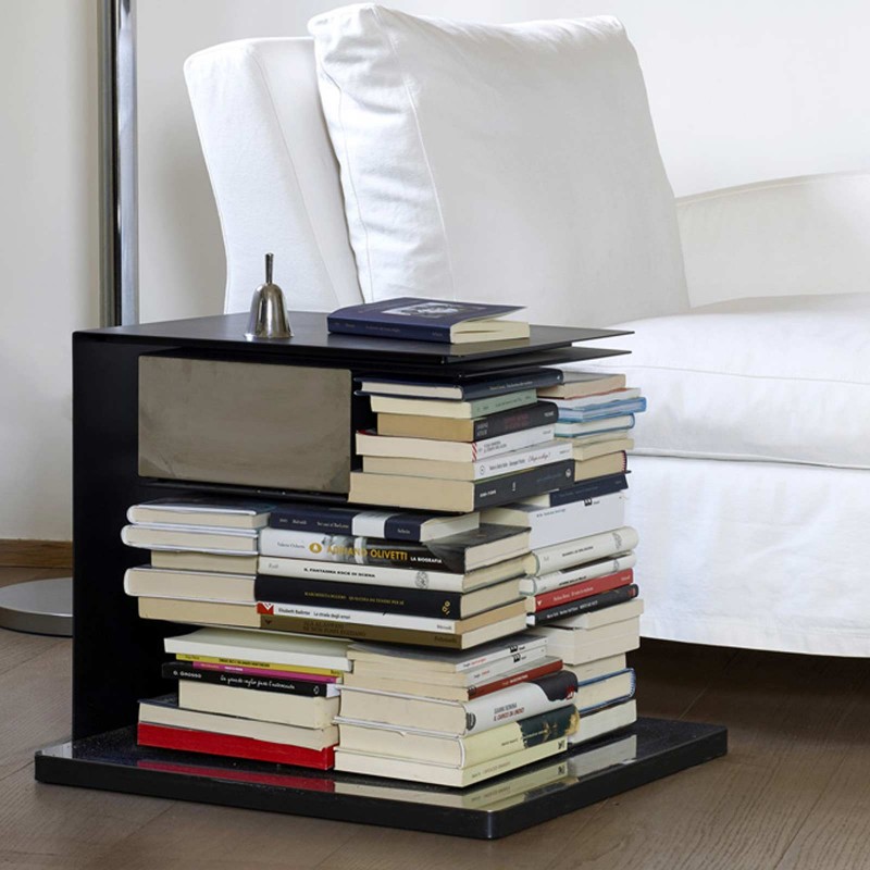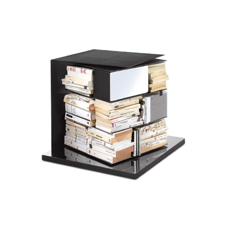 Ptolomeo x4 short è la versione bassa di Ptolomeo x4, la libreria a 4 lati girevole a 360°. Ptolomeo x4 assolve alla funzione di libreria bassa, comodino o tavolino ed è in metallo laccato nero o bianco, con base in acciaio inox lucido o bianca. Ptolomeo x4 prevede 3 ripiani distanziati di 13 cm tra loro. Un complemento trasversale da accostare al letto o al divano, Ptolomeo è attrezzato anche con un piccolo scomparto con anta apribile.