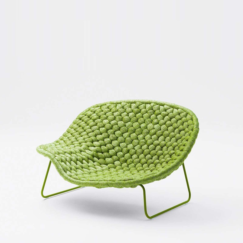 Shito è una poltrona in legno curvato a slitta di Paola Lenti con base in acciaio. Shito è disponibile nella versione poltrona L 95 x P 84 x H 85 cm e chaise longue L 130 x P 88 x H 80 cm. Shito fa parte della collezione outdoor del brand, ma è perfetta anche per arredare gli interni. La particolarità della maglia tubolare Chain Outdoor che compone Shito è l'effetto non uniforme in quanto è un insieme a di colori differenti che rendono il rivestimento mélange.