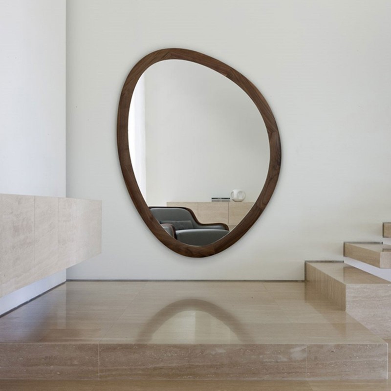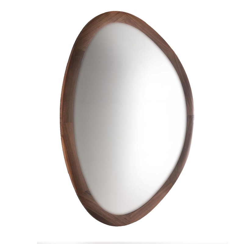 Giolo è lo specchio di Porada con cornice in massello di noce canaletta disponibile in molteplici finiture. Un complemento vagamente retrò dalle forme fluide che completa le più svariate ambientazioni d'arredo.