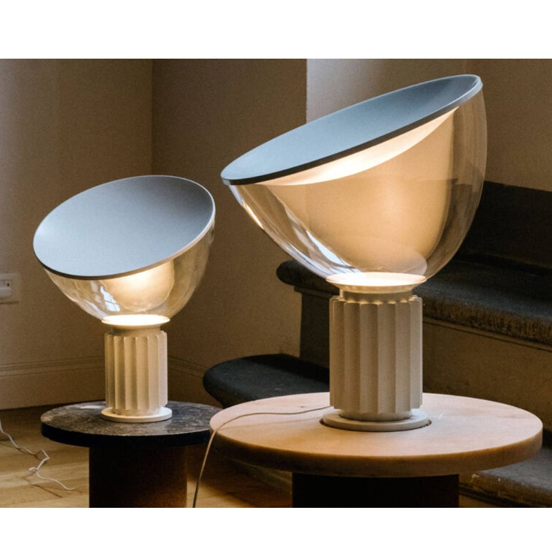 La lampada Taccia di Flos è un'icona indiscussa del design, firmata da Achille e Piergiacomo Castiglioni. Considerata dai designer la "Mercedes delle lampade", Taccia ha sembianze tradizionali nella base realizzata in alluminio verniciato nero, che ricorda una colonna classica. Il diffusore è una campana di vetro profonda sulla sommità della quale alloggia un disco concavo in alluminio smaltato bianco.