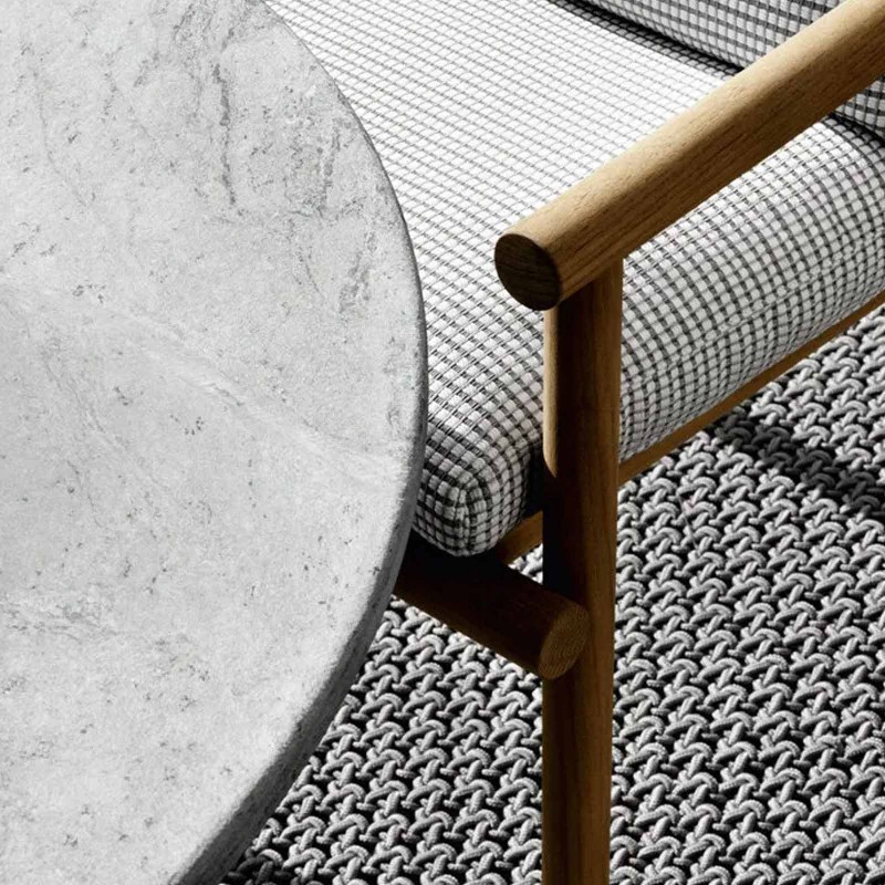 Ayana è il tavolo di B&B Italia dell'omonima collezione disegnata da Naoto Fukasawa. Un perfetto blend tra struttura in teak naturale e il piano in serpentino, una pietra tipica delle Alpi: entrambi materiali resistenti idonee per l'uso outdoor. Ayana è in legno certificato FSC® (Forest Stewardship Council), che al termine della sua vita può essere smaltito nel rispetto dell'ambiente. Il tavolo può essere abbinato alle sedie Ayana, presenti sul nostro catalogo.