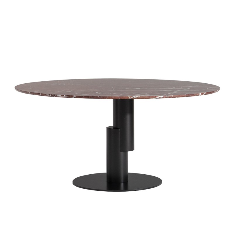 Il tavolo Innesti di Bonaldo esprime tutta la sua particolarità nel basamento, dove vi è questo incastro di elementi metallici che sorregge un piano circolare disponibile in vari diametri. Il risultato è decisamente scultoreo: Innesti può avere il top in legno, ceramica o marmo e varie finiture per la base.