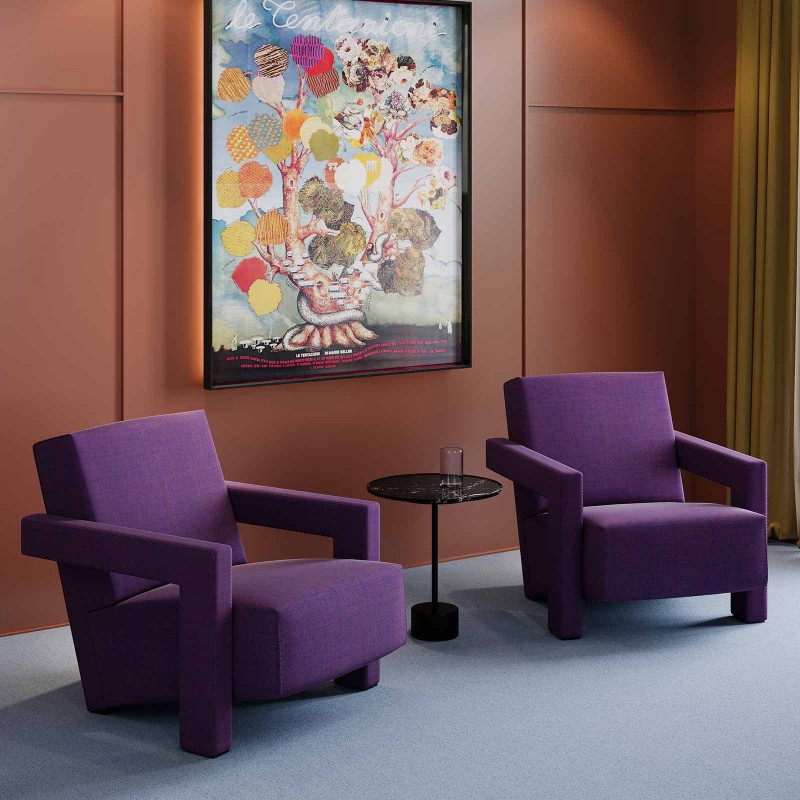 Utrecht è la poltrona progettata da Gerrit Rietveld nel 1935 per il grande magazzino Metz&Co di Amsterdam e rieditata da Cassina. Alla base dell'idea dell'architetto olandese la concezione di una seduta pensata per una facile distribuzione. Utrecht è una poltrona dove emerge la scomposizione degli elementi, a testimonianza dell'approccio sperimentale di Rietveld. Utrecht fa parte della collezione Cassina Pro ed è disponibile in un'infinita gamma di rivestimenti in pelle o tessuto Cassina, con due tipologie di impuntura. Un'icona che riesce ad arredare con gusto e design gli spazi contract, così come gli uffici dirigenziali.